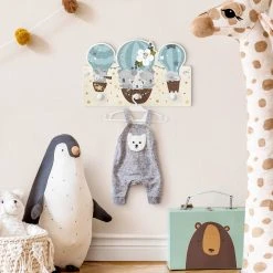 WallArt Kindergarderobe Holz – Tiere In Ballons Wolken Sterne Blau In Blau