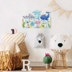 WallArt Kindergarderobe Holz – Unterwasserwelt – Fisch Set In Blau