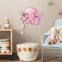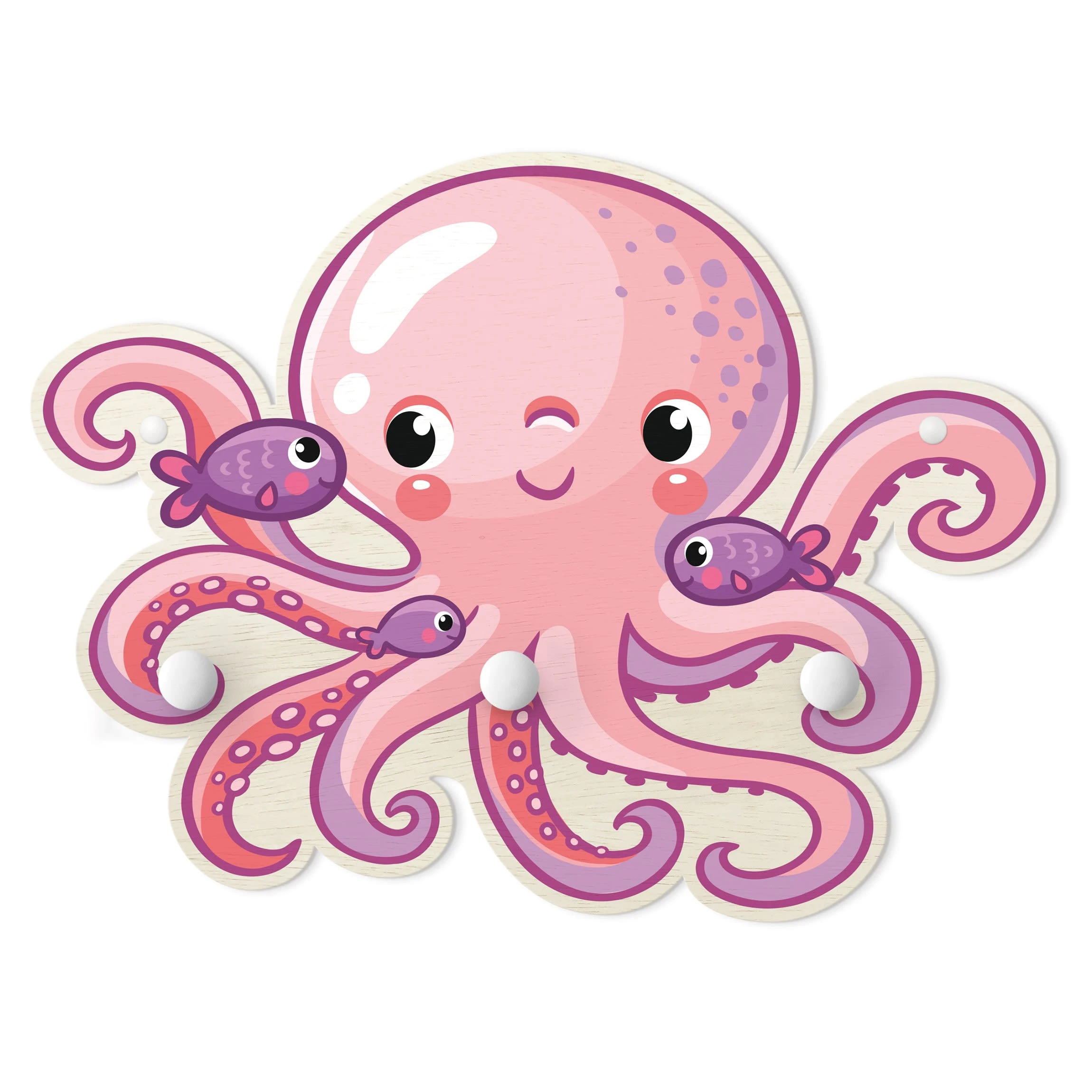 WallArt Kindergarderobe Holz – Unterwasserwelt – Krake Violett Rosa In Rosa