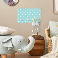 WallArt Kindergarderobe Holz – Weiße Herzen Auf Mint In Blau