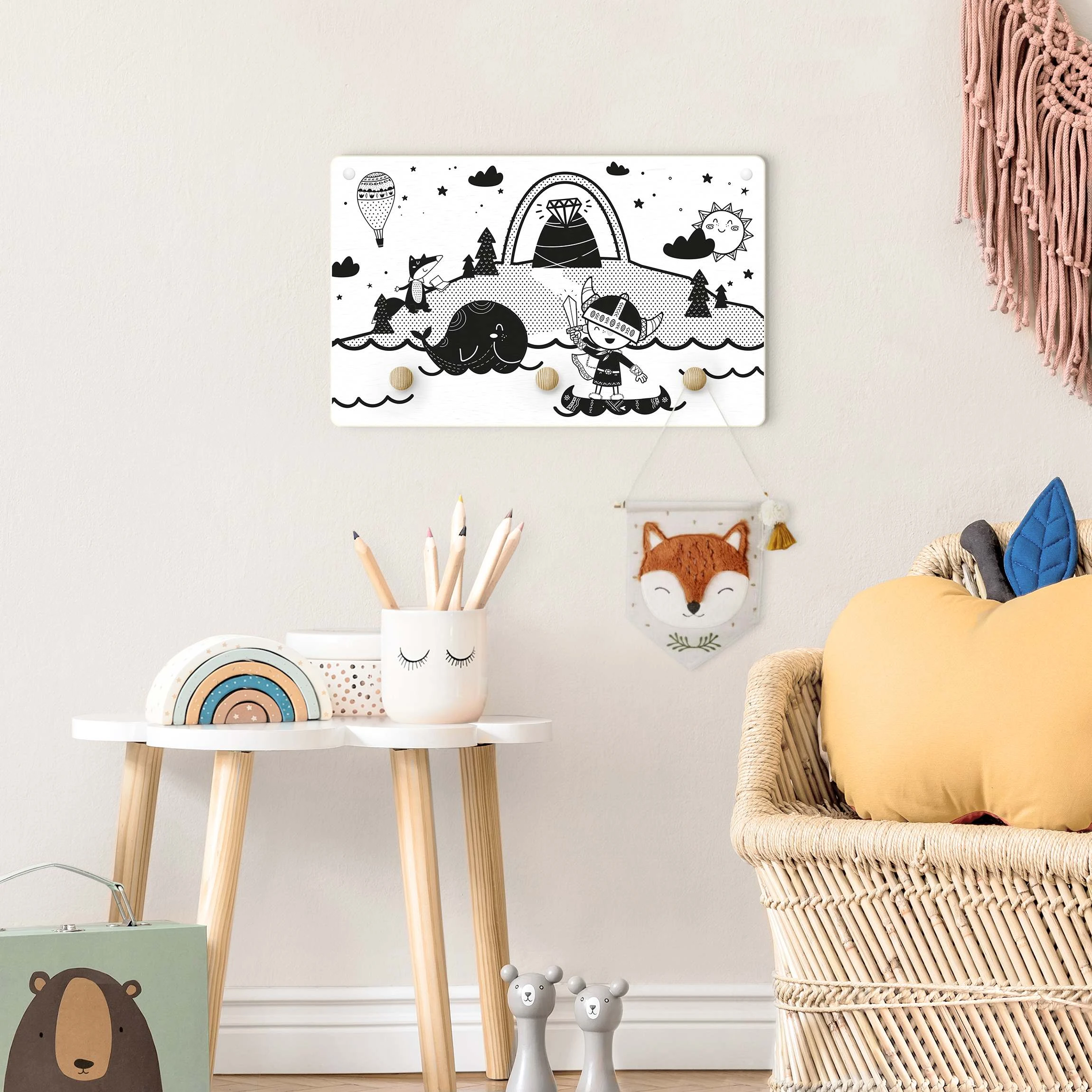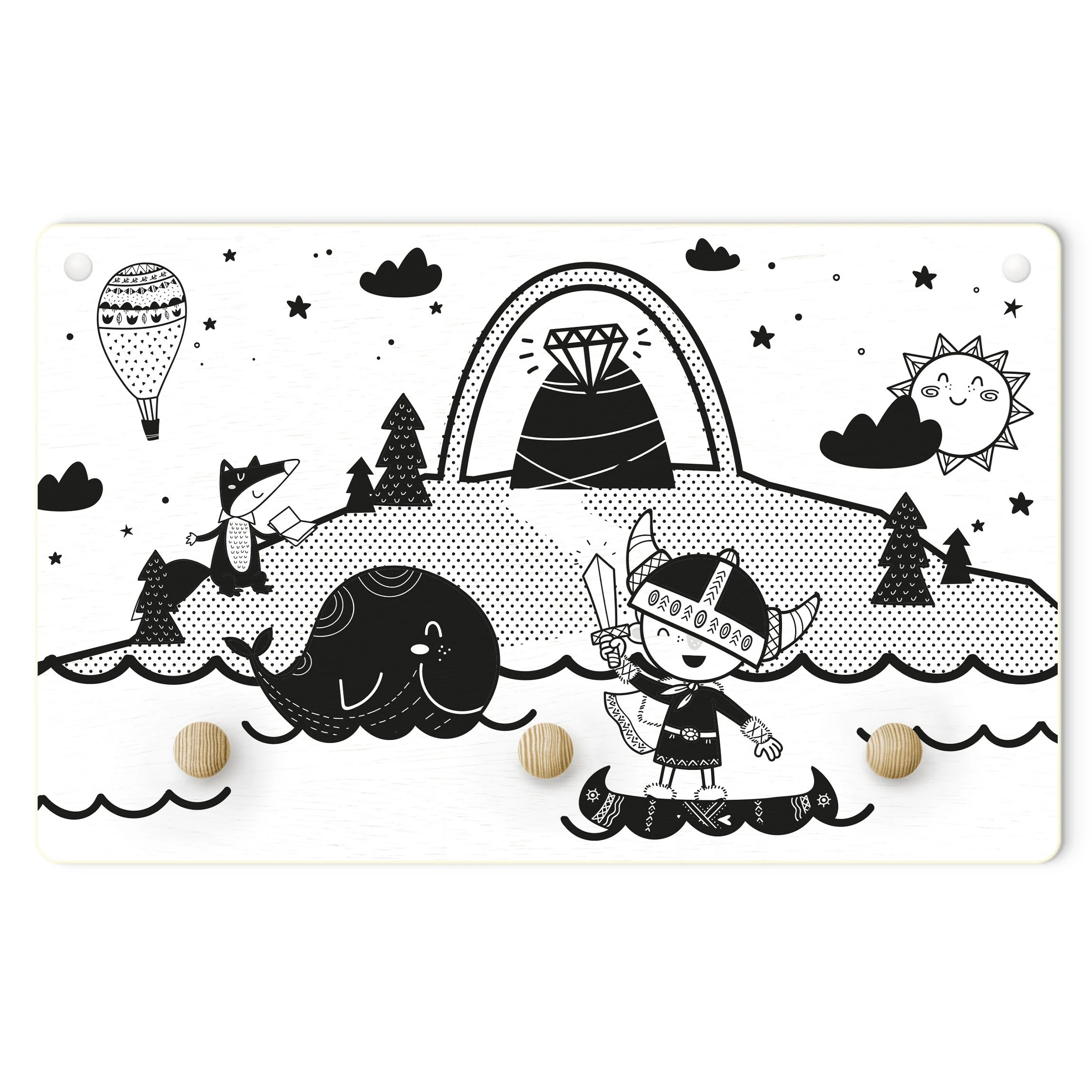 WallArt Kindergarderobe Holz – Wikinger – Pfad Zum Diamantenberg In Schwarz-Weiß