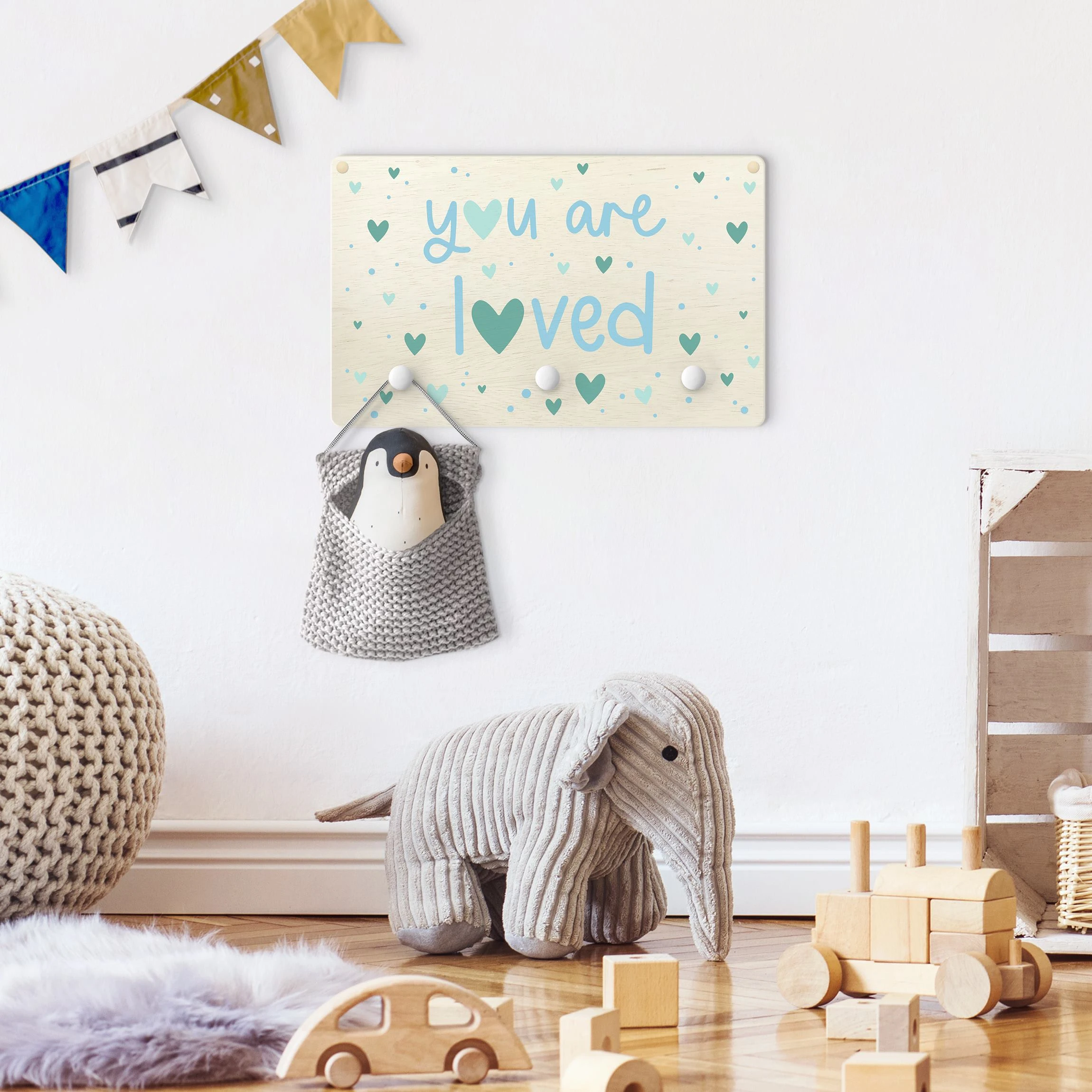 WallArt Kindergarderobe Holz – You Are Loved Herz Blau In Blau