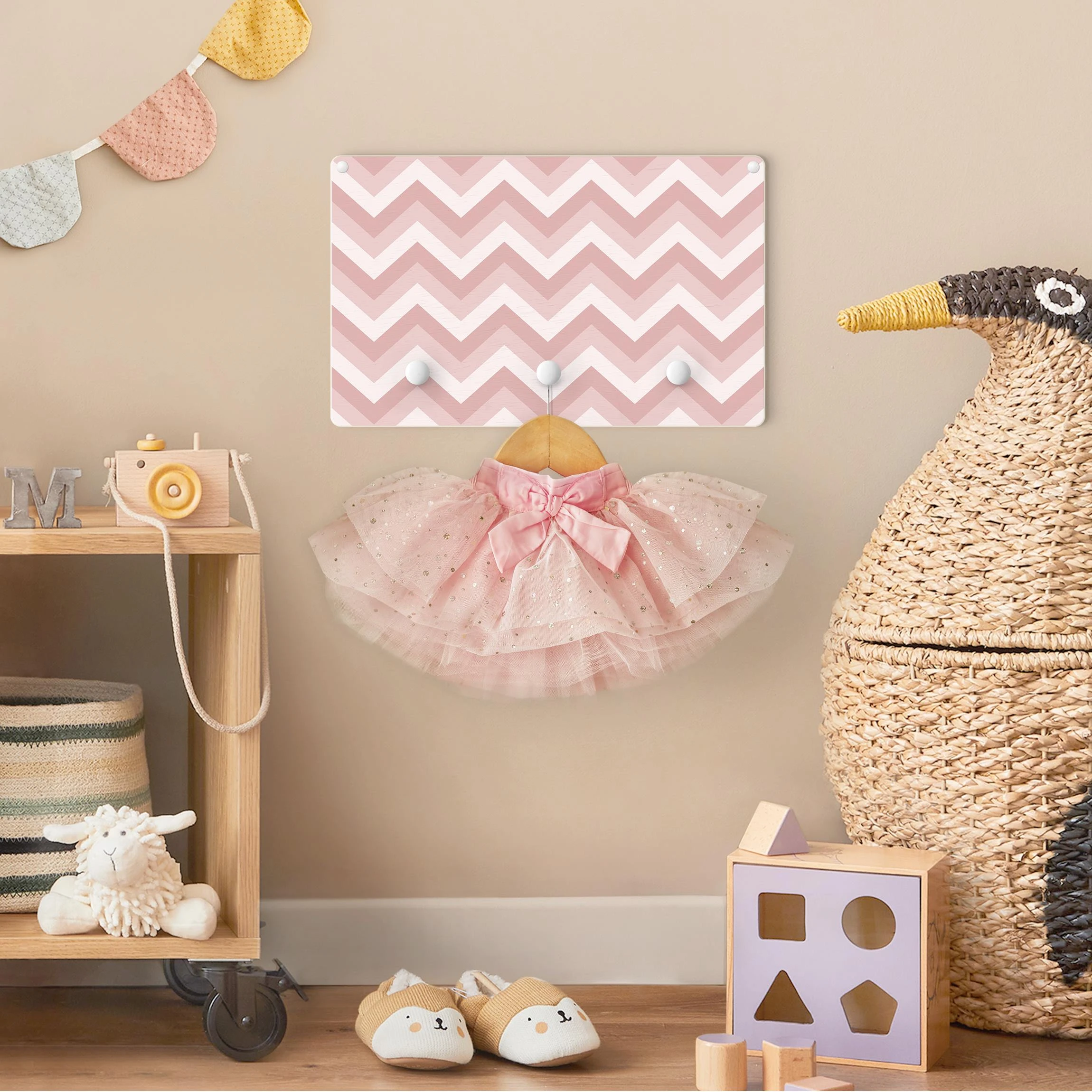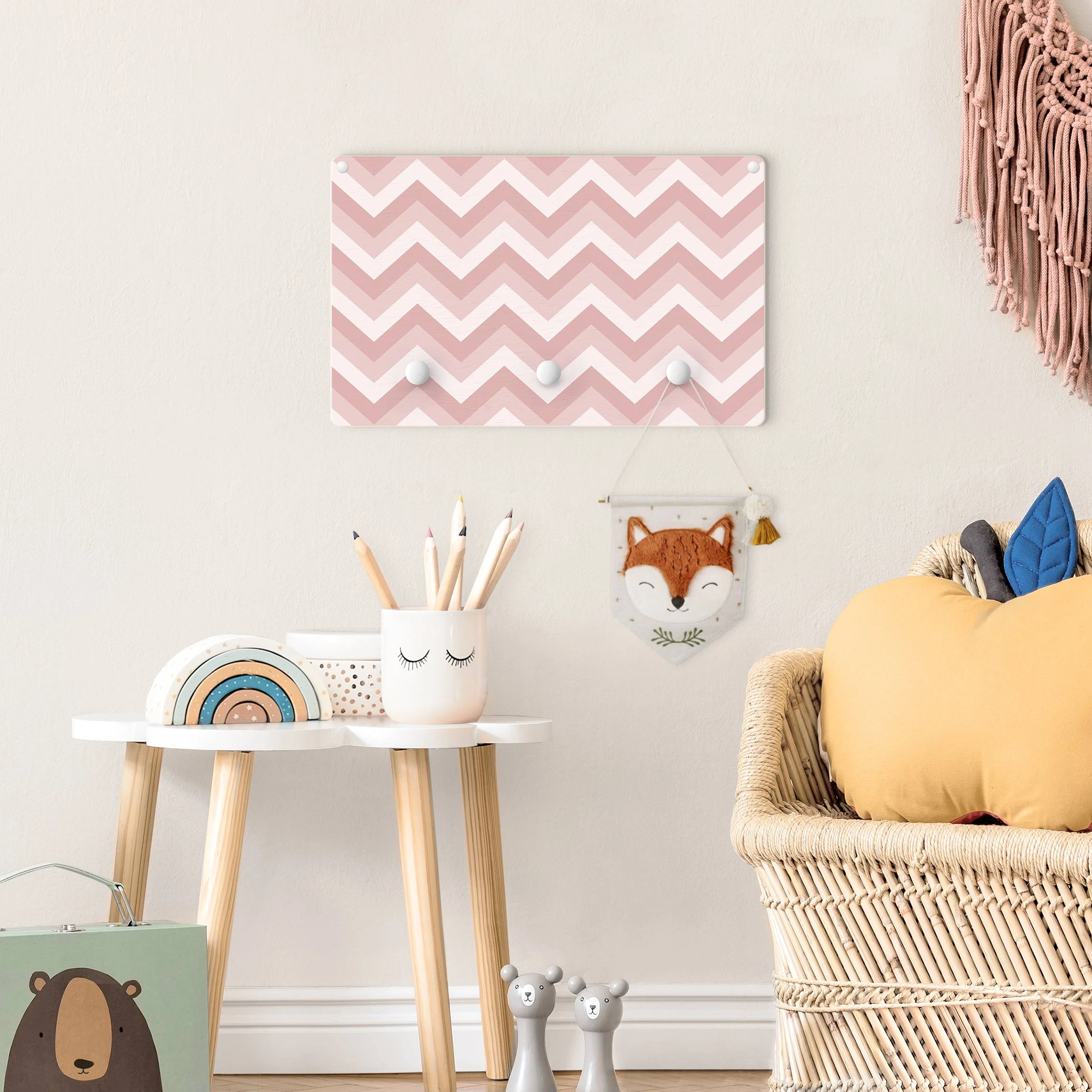 WallArt Kindergarderobe Holz – ZickZack Muster Altrosa In Rosa